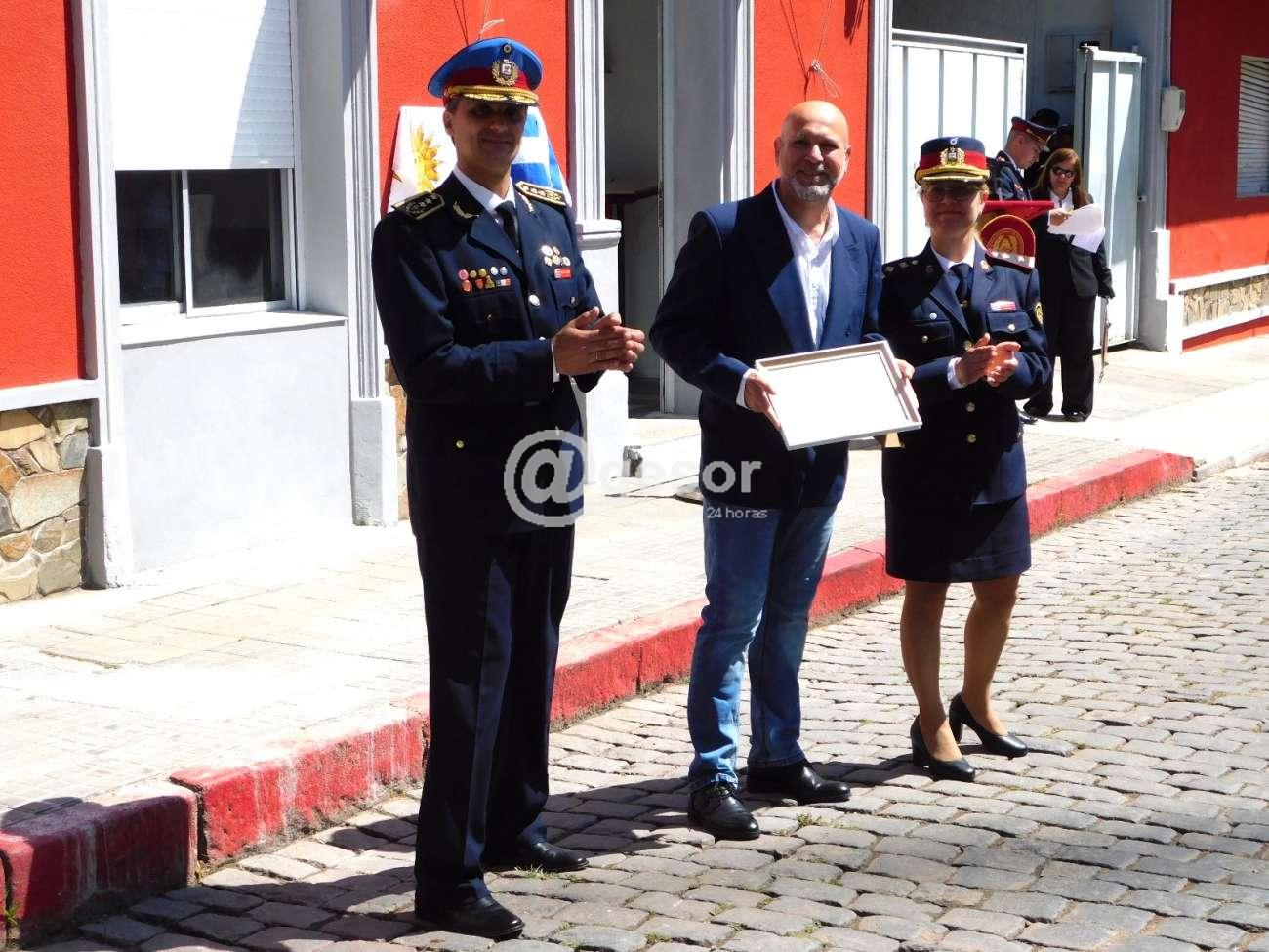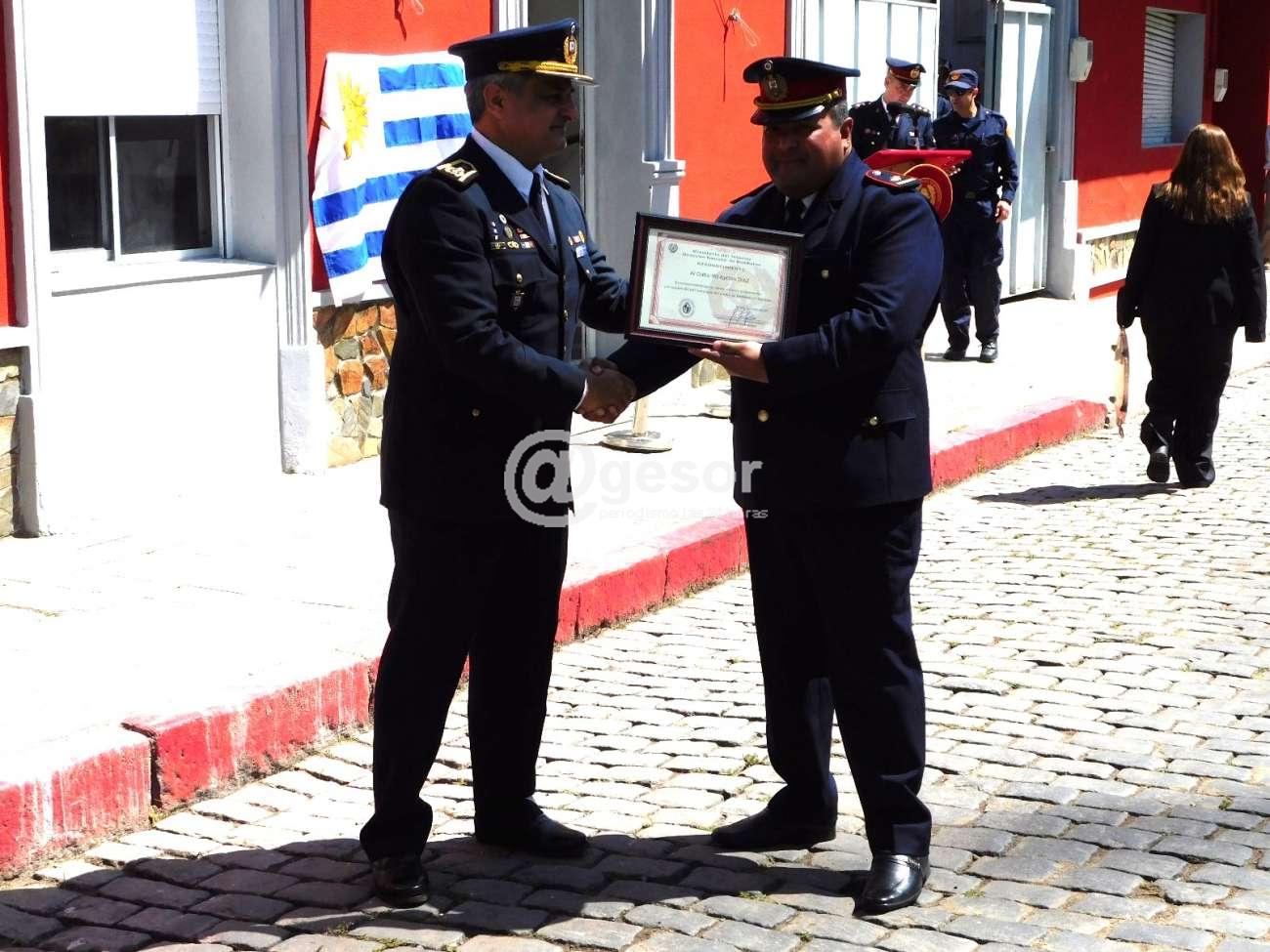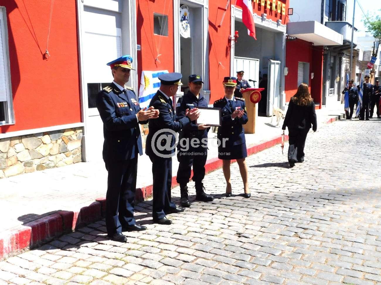 Se reconoció el apoyo de la Jefatura de Policía de Soriano en lo que refiere a la capacitación de bomberos en la tarea que realiza lo que fue recibido por el Jefe de Policía Crio. May. Jorge Falero y la Sargento Evangelina González, entregando el Director Nacional de Bomberos Crio. Gral. Richard Barboza y la Jefa de Región 3 del Comando de Bomberos del Interior (CBI), Crio. Marcela Pereyra.
