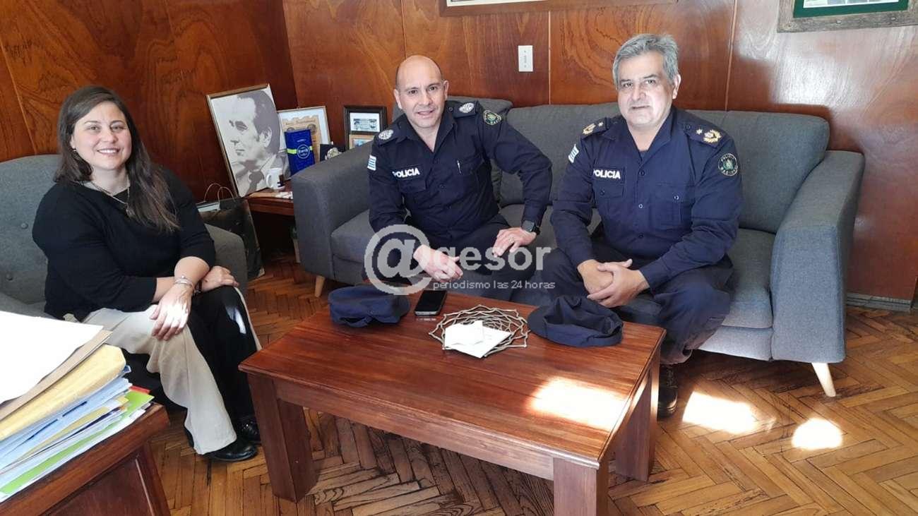 El encuentro tuvo lugar en el despacho del Palacio Municipal, donde la Dra. Barreiro recibió al Crio. May. Jorge Falero y al Crio. May. Luis Eduardo Astigarraga, Jefe y Sub Jefe de Policía de Soriano, respectivamente.