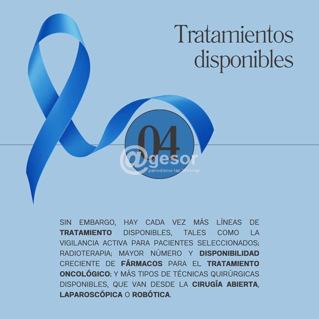 Sin embargo, explicó que hay cada vez más líneas de tratamiento disponibles, tales como la vigilancia activa para pacientes seleccionados, radioterapia, un mayor número y disponibilidad creciente de fármacos para el tratamiento oncológico, y más tipos de técnicas quirúrgicas disponibles, que van desde la cirugía abierta, laparoscópica o robótica.
