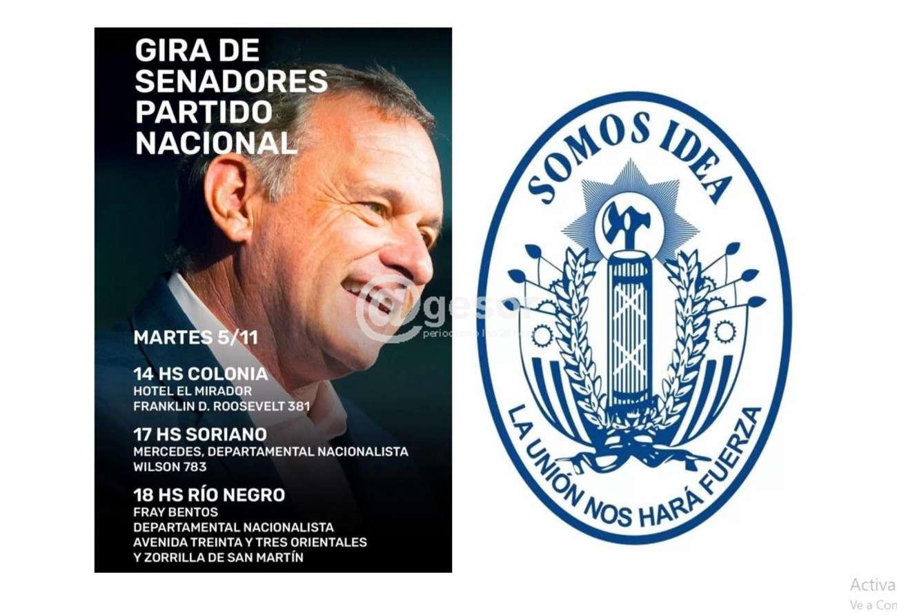 La COMISIÓN DEPARTAMENTAL del PARTIDO NACIONAL de SORIANO, invita a participar de la Conferencia de Prensa de la Gira de SENADORES, que brindan hoy martes 5/11, hora 17:00 en la Casa del Partido en Wilson Ferreira Aldunate 783; abierta a todo público.