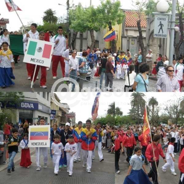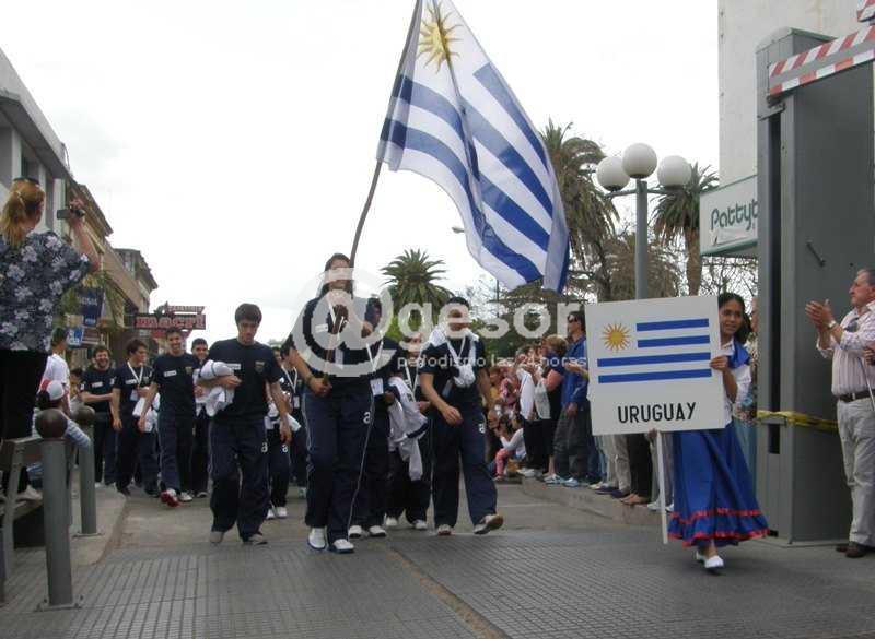 Delegaciones de los países intervinientes es este certamen internacional salieron del Club Pelotaris Mercedes, para llegar al centro de Mercedes, recorriendo las calles de la semi peatonal hasta llegar a Plaza Artigas donde se realizó el acto inaugural. Numeroso público se congregó en el centro de Mercedes para recibir a las delegaciones que con sus banderas e insignias participaron de esta fiesta previo a la competencia deportiva. Desde tempranas horas de la tarde podía verse en el centro de Mercedes a un importante número de personas, y no solamente mercedarios, ya que han llegado a presenciar esta competencia internacional, no solamente representantes de los países intervinientes, sino público y aficionados a este deporte.