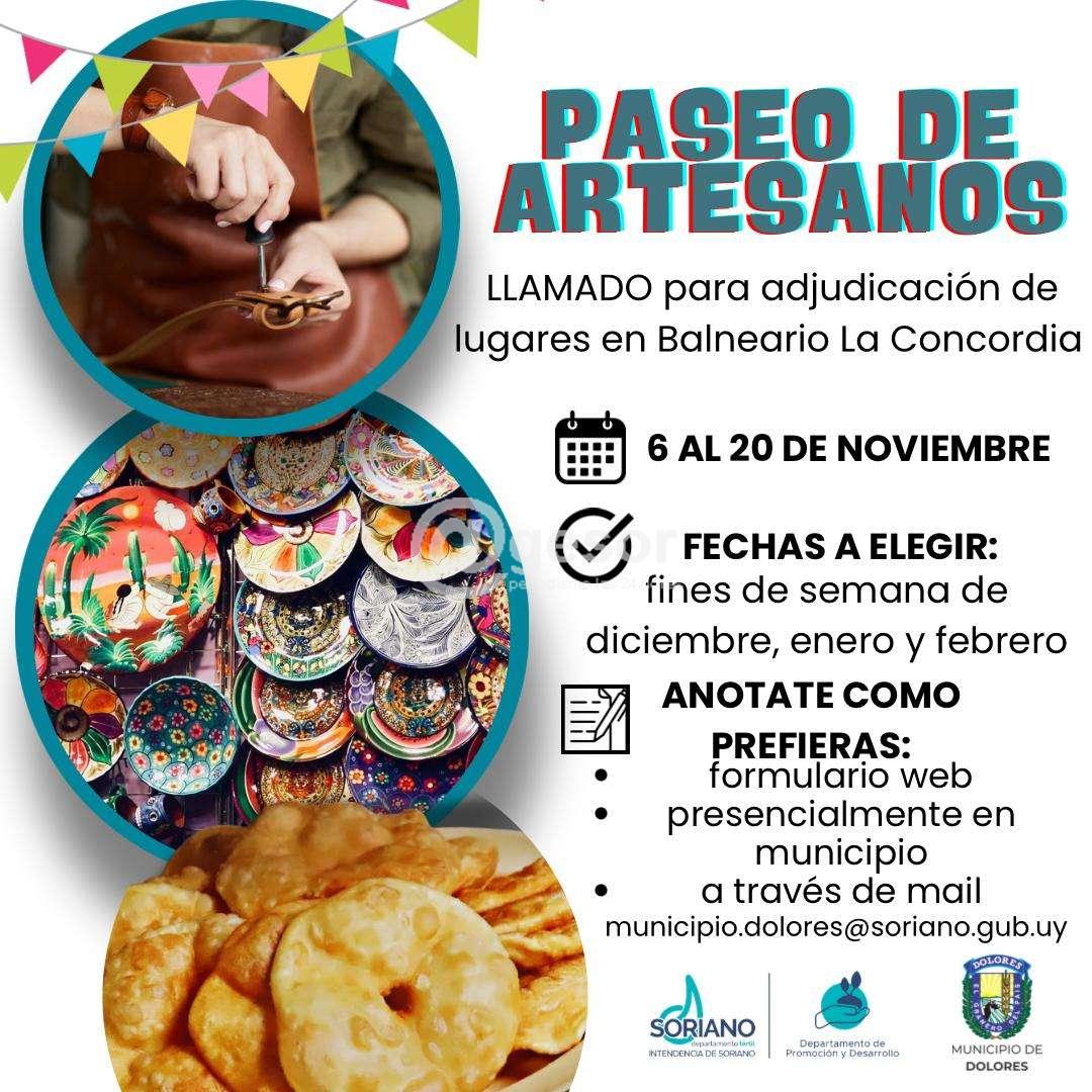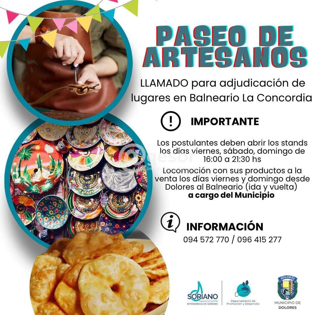 El Municipio de Dolores, la Intendencia de Soriano a través de su Departamento de Promoción y Desarrollo están convocando para el llamado para adjudicación de lugares en balneario La Concordia en lo que será el Paseo de Artesanos.