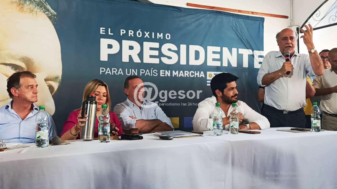 Y en el Uruguay también hubo una caída del poder adquisitivo firmada y acordada con el PICNT, con el que hoy está en la presidencia el Frente Amplio, que puso la firma que si en el Uruguay en 2020 había una caída del Producto Bruto, o sea una caída del crecimiento de la economía para preservar un empleo que estaba muy deteriorado porque nosotros si le damos una caída de 50.000 puestos de trabajo en los últimos años del gobierno del Frente Amplio íbamos a preservar el empleo e íbamos a aceptar un deterioro del poder adquisitivo del salario. Y eso ocurrió, pero también ocurrió que nosotros nos comprometimos a recuperar el poder adquisitivo del salario en el transcurrir de este periodo de gobierno y hoy podremos demostrar orgullosamente que hoy el salario de los trabajadores de Estados Unidos está encima de lo que lo dejó de ver el expresidente Mujica, miente hablando de congelación, porque al día siguiente de vencida la primera ronda del Consejo de Salarios comenzó la recuperación del poder adquisitivo con la firma y el acuerdo de todos los trabajadores en las dos rondas salariales que tuvimos en 2021 y en 2023. Y hay que desenmascarar las mentiras porque esto recién empieza, quedan dos semanas y están muy preocupados, están muy preocupados porque este gobierno lo ha hecho bien, están muy preocupados porque no tienen propuestas, porque esto que tenemos nosotros que es el programa de gobierno acordado entre todos los partidos de la coalición y firmado este lunes pasado presenta 400 medidas concretas, claras y significativas de lo que puede ser un siguiente gobierno de coalición para seguir avanzando".