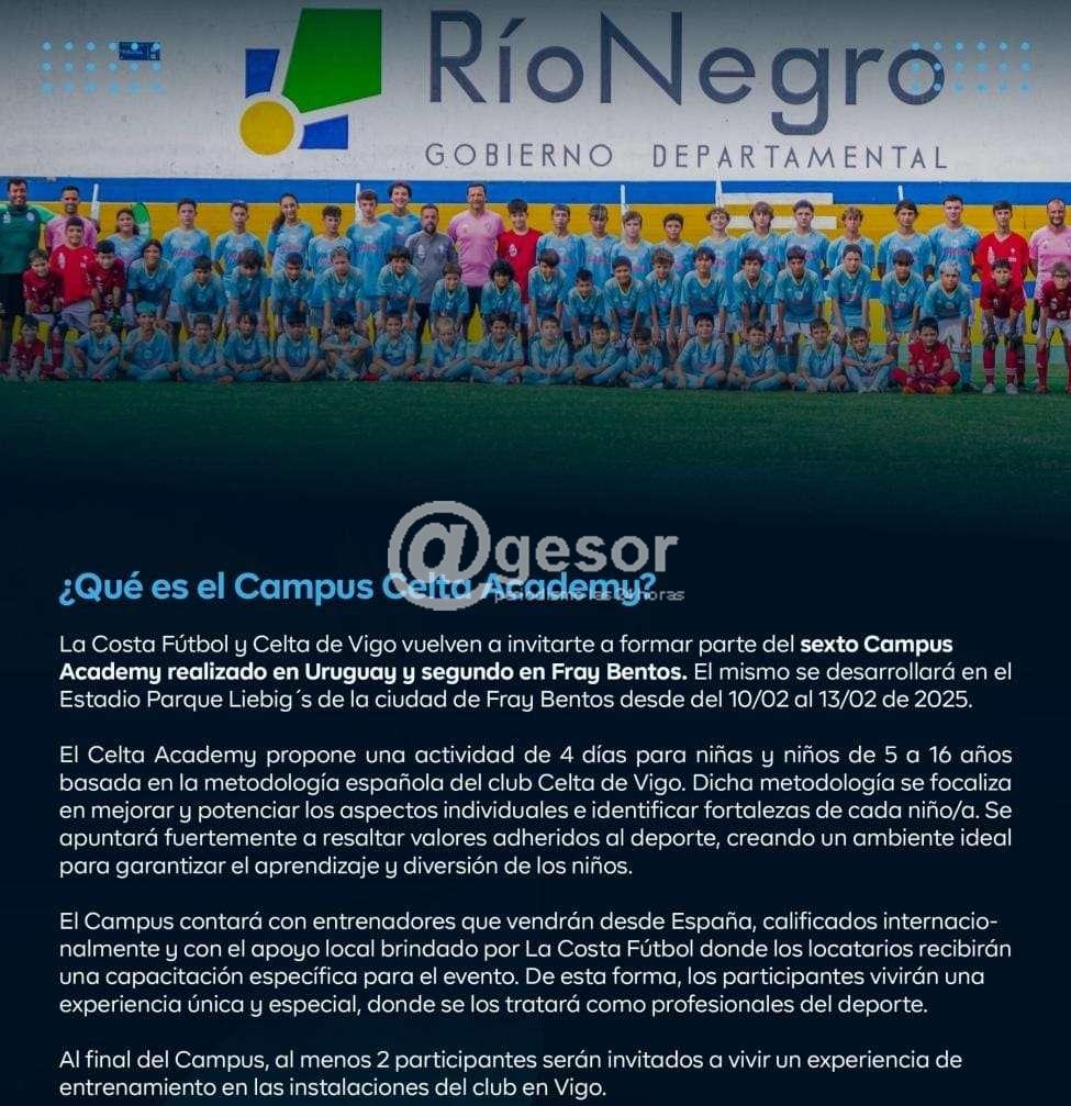 En el mes de febrero estaremos en Atlantida y Fray Bentos con el Campus de Fútbol Celta Academy para niños de 5 a 16 años.