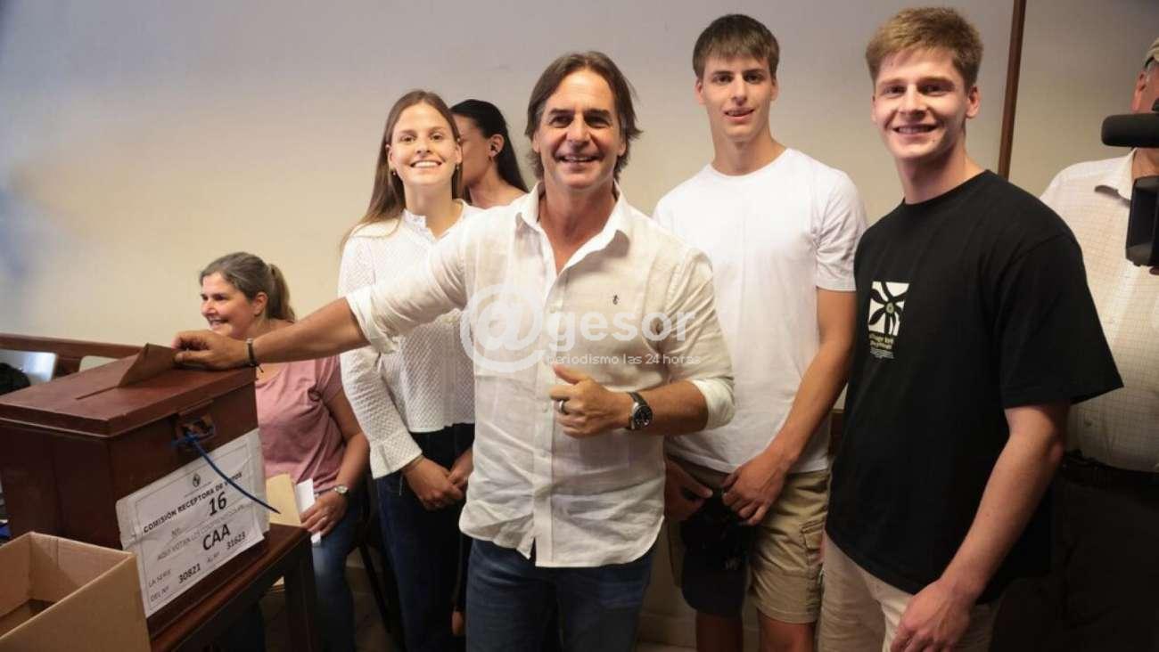 El presidente uruguayo, Luis Lacalle Pou, votó en Instituto de Formación Docente de Canelones, a pocas cuadras de donde lo hizo el candidato frenteamplista Yamandú Orsi. Estuvo acompañado por sus tres hijos.