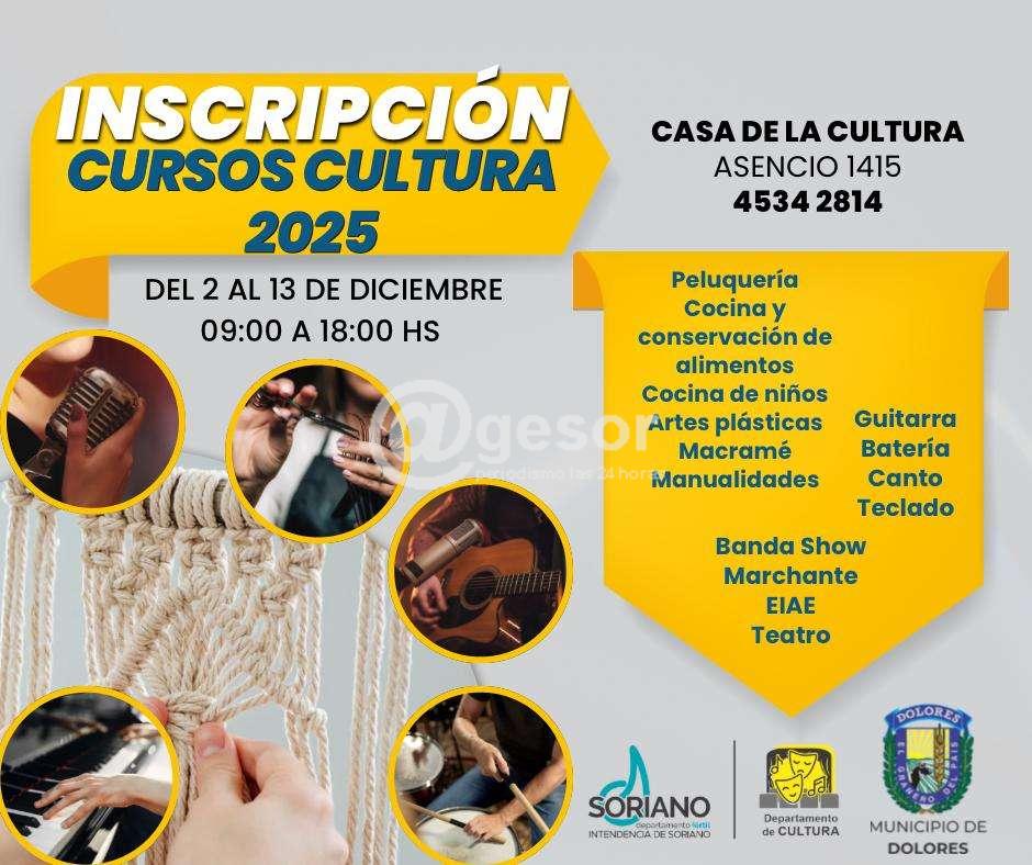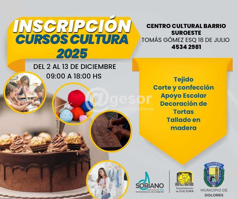 El Centro Cultural Barrio Suroeste de Dolores abre inscripciones para cursos de Cultura,desde el 2 al 13 de diciembre de 9.00 a 18.00 horas.