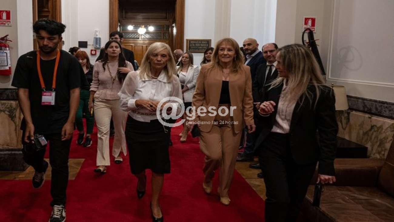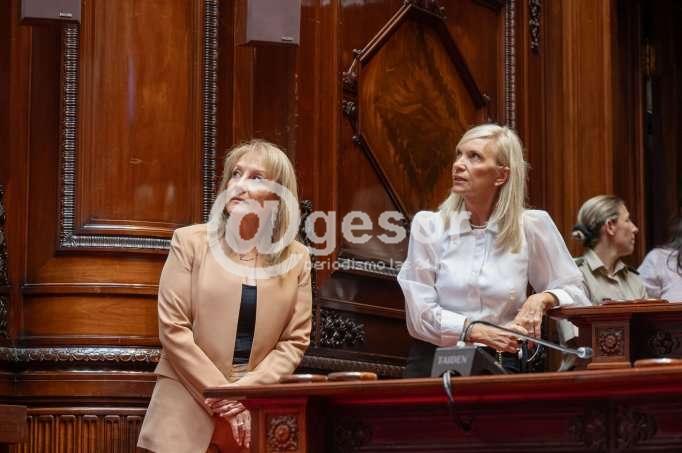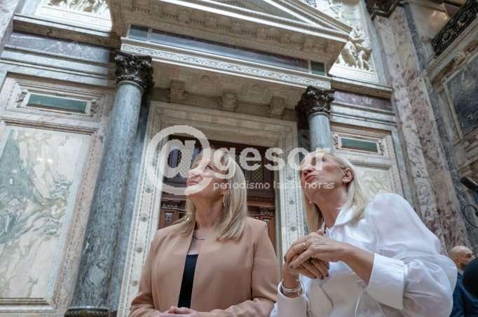 A continuación, las autoridades recorrieron la Sala de Sesiones de la Cámara de Senadores y el Salón de los Pasos Perdidos. Este espacio se encuentra en proceso limpieza de los ornamentos y refacción de molduras de yeso.