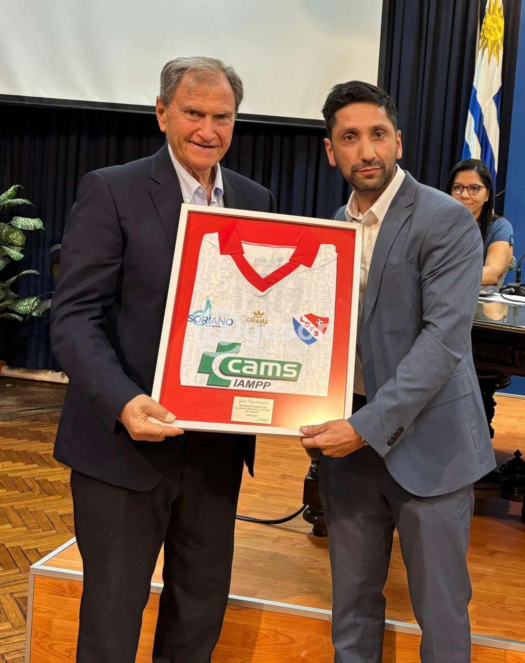 En respuesta a la distinción recibida, el presidente del órgano directriz del fútbol hizo entrega de una camiseta de la selección de Soriano que obtuviera el máximo galardón del interior, al presidente de la Junta.