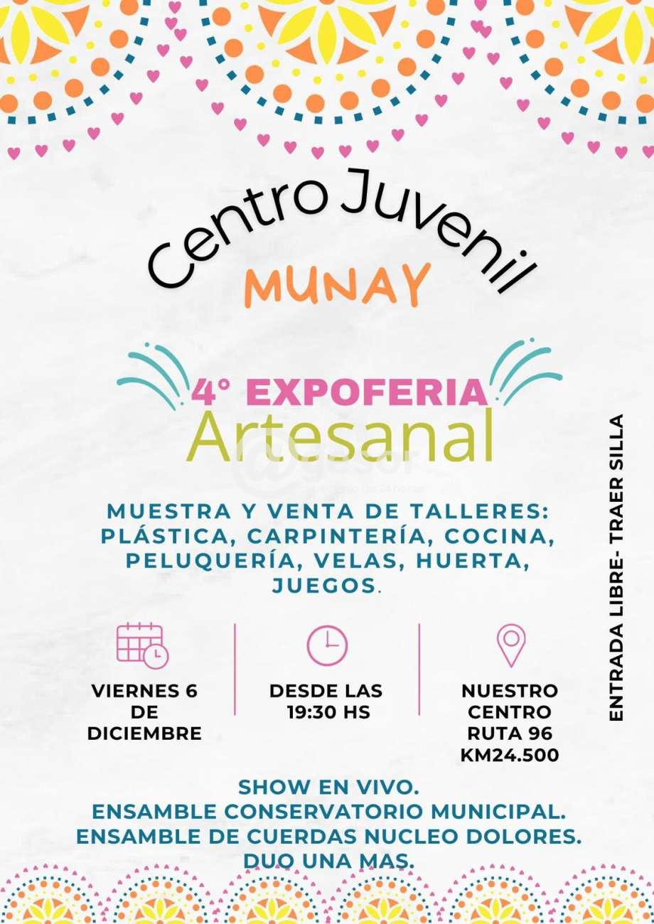 Este viernes 6 Centro Juvenil Munay presenta la 4ª Expoferia Artesanal, desde las 19.30 horas en el centro ubicado en Ruta 96 km 24,500.