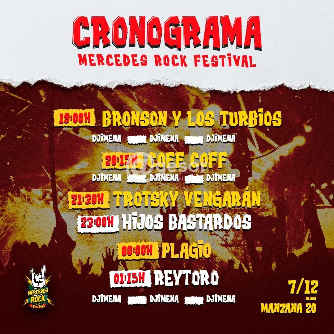 Este sábado 7 de diciembre se lleva a cabo una nueva edición del Mercedes Rock Festival en Manzana 20 de Mercedes en la zona del puerto local, con la participación de varias bandas de primer nivel.