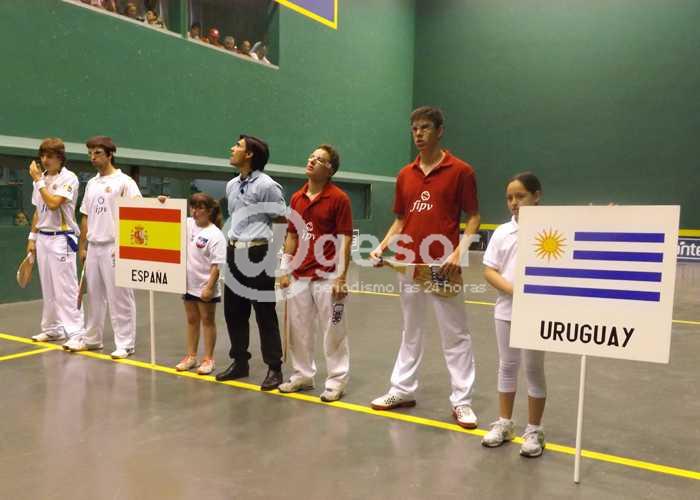 En el penúltimo partido de este miércoles por el Campeonato Mundial sub-22 de Pelota Vasca, que se cumple en Mercedes, jugaron Uruguay y España, en Pelota de goma, en la rama masculina, logrando el binomio local el triunfo y el consiguiente pasaje a las semifinales, que comienzan este jueves.