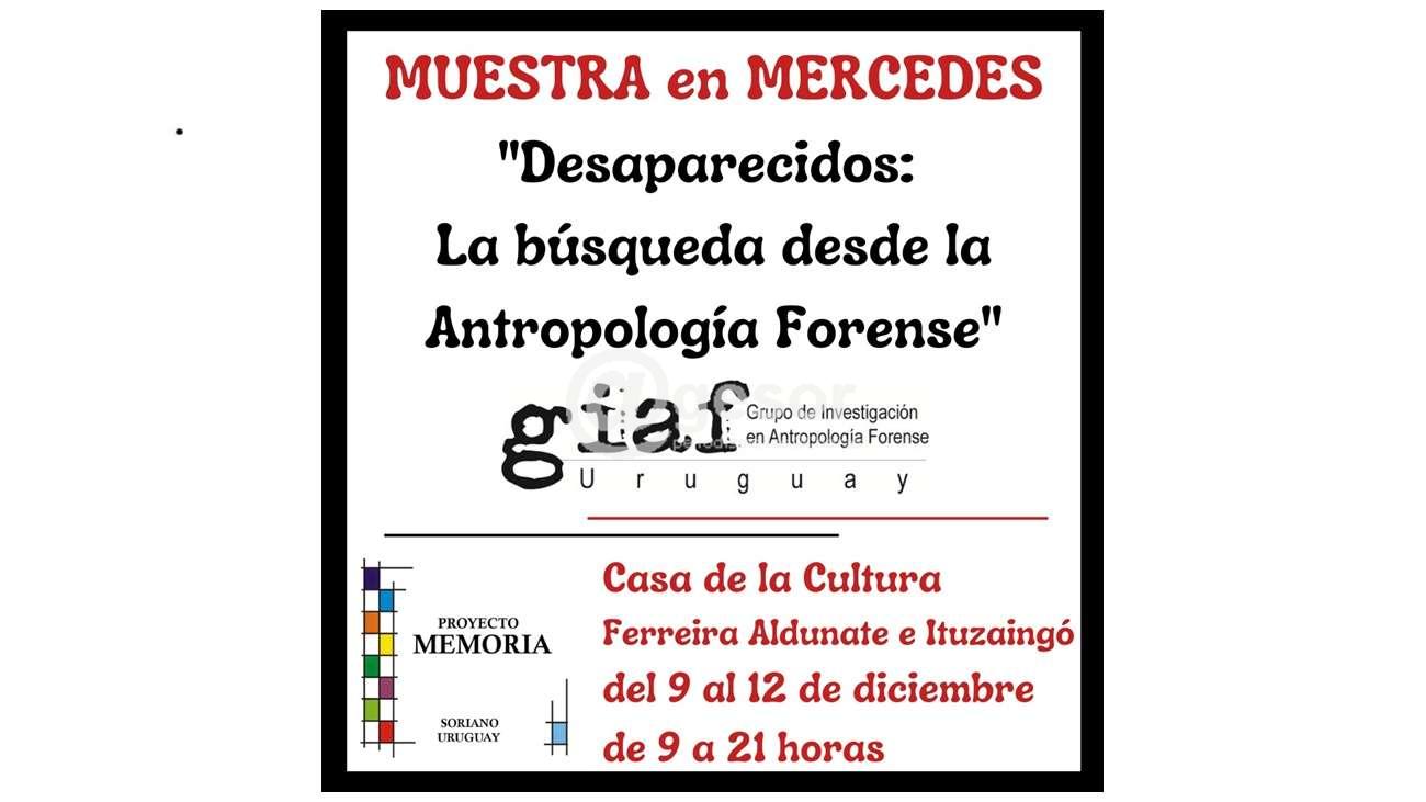 La Comisión Memoria, Justicia y contara la Impunidad de Soriano organiza una muestra fotográfica denominada ´Desaparecidos: la búsqueda desde la antropología forense´. La misma recoge material del GIAF (Grupo de Investigacion en Arqueologìa Forense) de Uruguay.