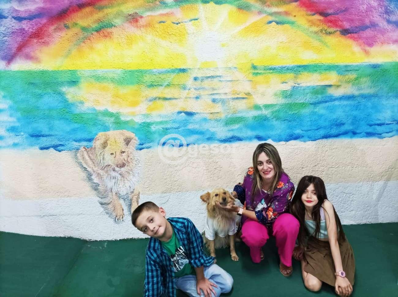 Acá trabajó Huguito Colombatto, acá trabajó Mario Lemaire, acá trabajó Almeida, que fue el que me puso los pisos, "Pichunga" Peirano, que él me hizo ese enorme cuadro que está ahí con Valiente, me lo pintó, que eso fue idea de Alma, de poner a Valiente ahí. Y también él incentivó y cultivó el arte en mis hijas, en mi hija y la amiga, y con la ayuda de él pintaron la entrada de lo que viene a ser la sala de maquillaje. La sala de maquillaje tiene tres corazones que nos representan, y está hecha para que vengan a maquillarse, viste que a veces vienen, contratan el entretenimiento o los animadores y vienen junto con el maquillaje para tener un lugar específico para eso, que tiene espejos, que tiene luz, que tiene luces LED.