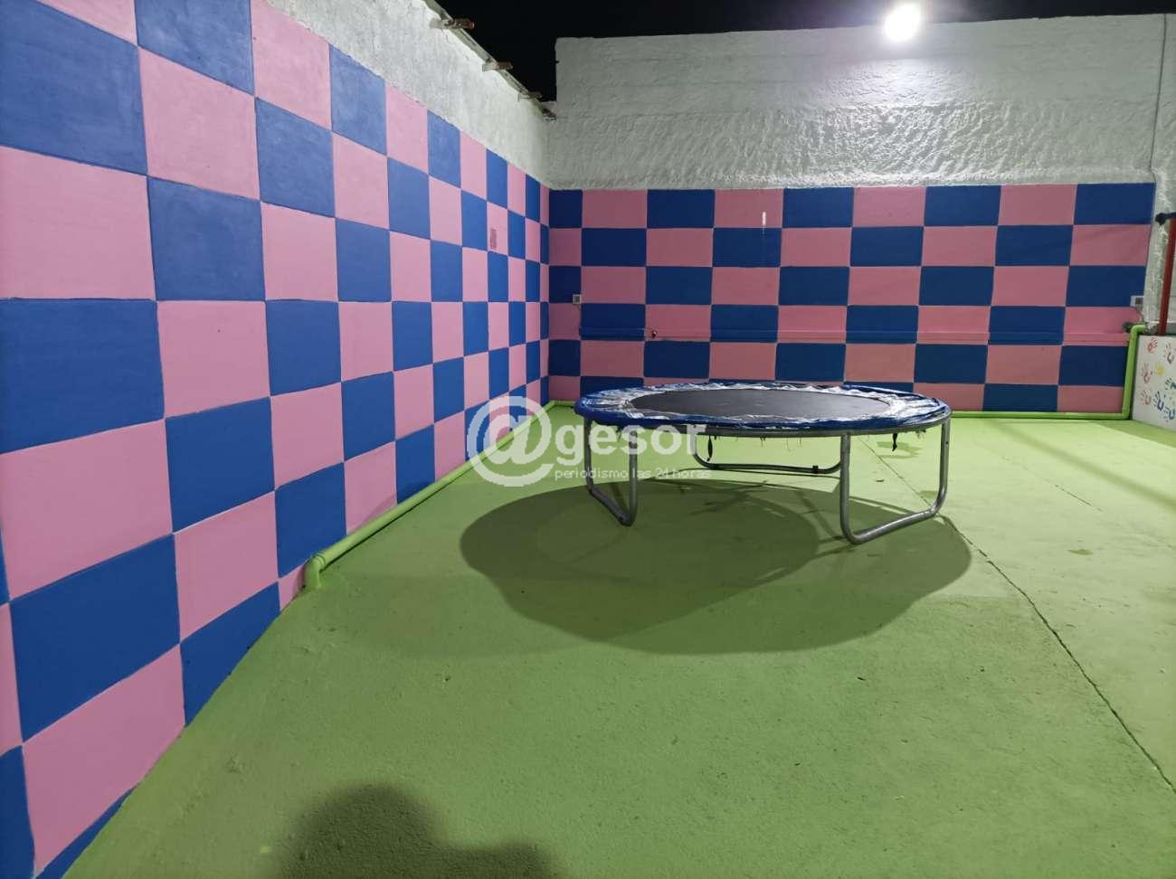 El local cuanta microondas, heladera, freezer, licuadora, anafe con una olla para hacer panchos, un parrillero con horno a leña, stereo con parlante para hacer karaoke, tengo alfombra musical para que bailen, que se ubica en la sala de maquillaje que cuenta con tres espejos en forma de corazones, asimismo una cama elástica. El salón cerrado está climatizado con equipo de aire aacondicionado, también se cuenta con Wi-Fi, un televisor con HDMI para reproducir los mejores momentos que quieran de la fiesta. La alfombra tiene su reglamento, que obviamente no puede mojarse, no puede estar afuera en el patio, por eso se ubica en la sala de maquillaje".