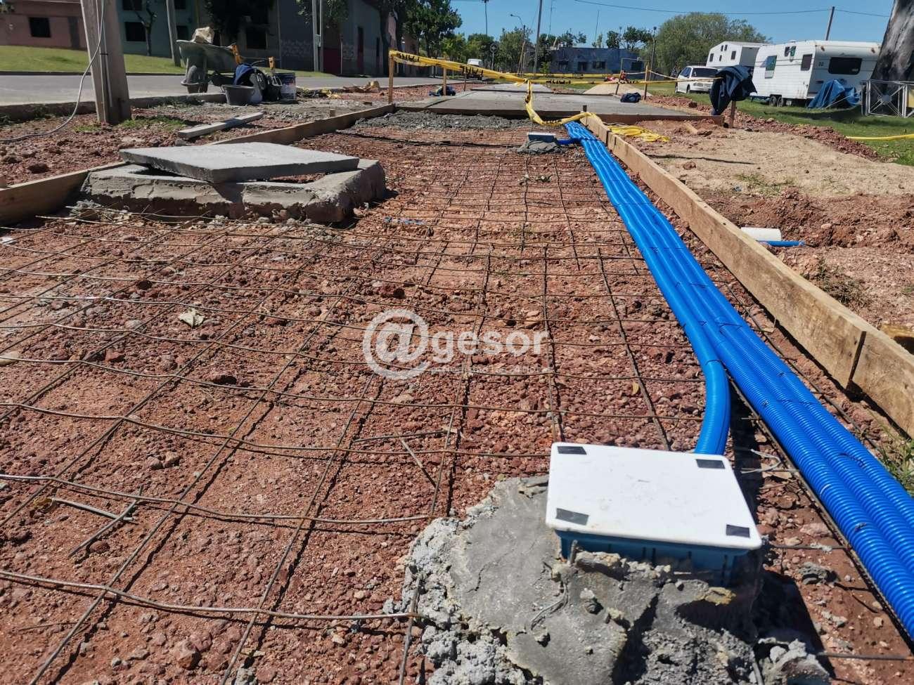 En la acera oeste de calle Rivera entre Detomasi y Av. Zorrilla de San Martín, se realizan tareas en la base donde se colocarán los módulos, luego de los movimientos de tierra se colocaron los ductos y las cañerías para las correspondientes instalaciones eléctrica, sanitaria y para agua potable; también se conformó una carpeta de hormigón sobre la que se colocan los módulos.