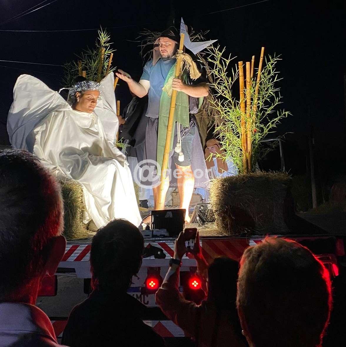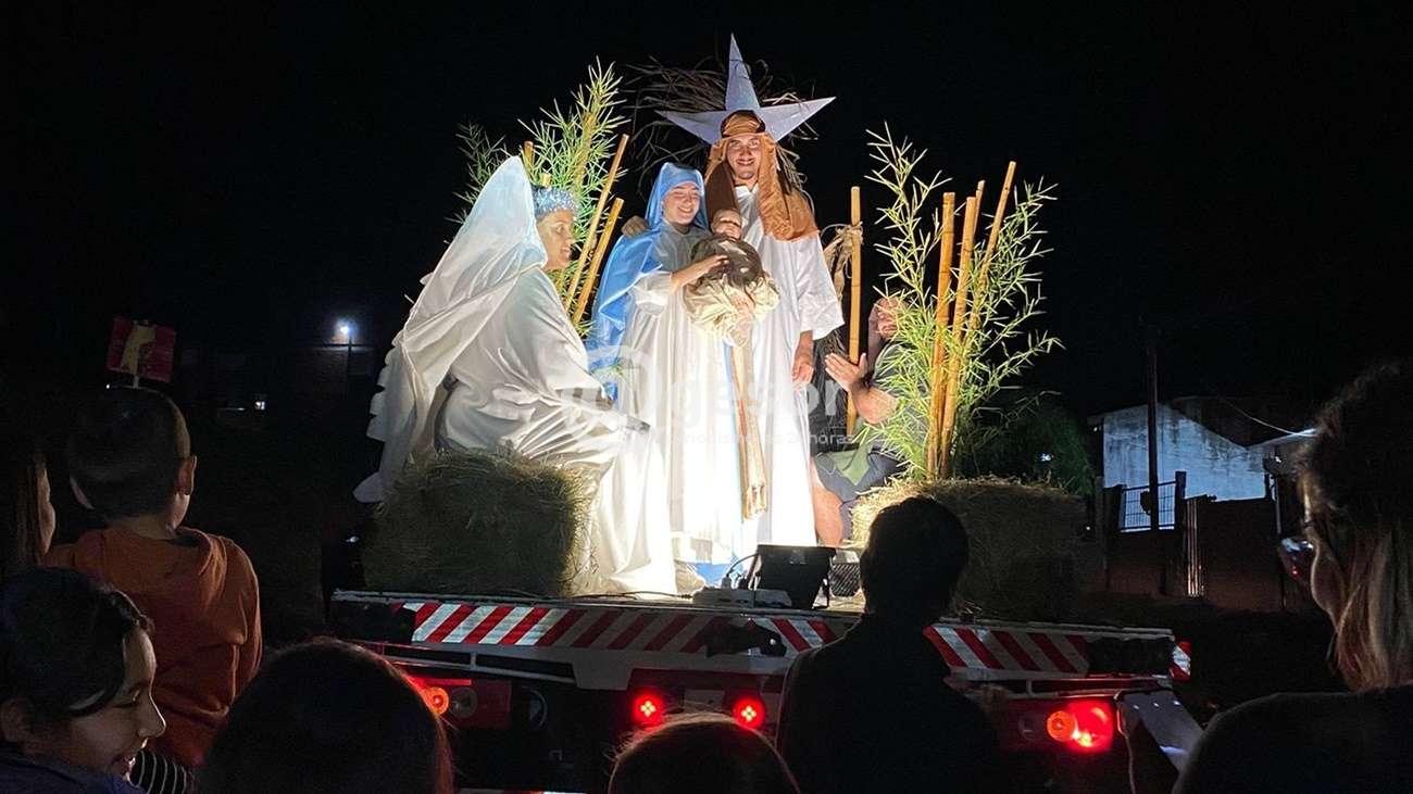 La escenografía del Pesebre Vivo, estuvo a cargo de jóvenes que -transportados en un camión- recrearon el ambiente del establo de Belén, donde el Niño Dios vino al mundo acompañado por sus padres San José y la Santísima Virgen.