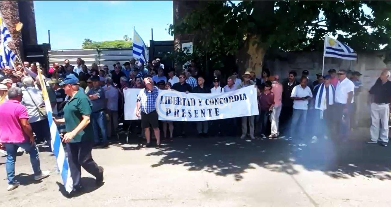 Este domingo se realizó concentración de militares retirados y familiares, en apoyo a los militares que se encuentran procesados y recluidos en la cárcel conocida como de Domingo Arena, con la finalidad de brindarles su apoyo y a la vez expresar su disconformidad por el incumplimiento de lo resuelto por el pueblo uruguayo en los dos plebiscitos que se llamaron relacionados con la conocidad como Ley de Caducidad de la Pretensión Punitiva del Estado y que luego originara más acá en el tiempo una ley interpretativa por parte del Parlamento, que permitió que se continuaran con las investigaciones y de allí los procesamientos de militares y otros ciudadanos que se consideraba involucrados en crímenes de lesa humanidad, habiéndose creado inclusive una Fiscalía específicamente para atender esta temática.