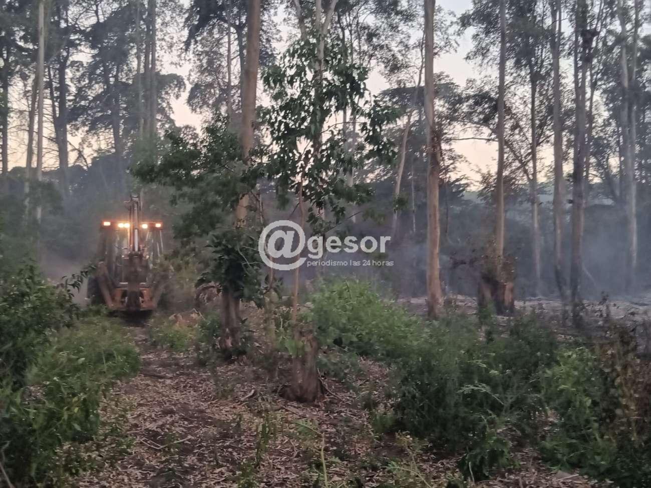 Ya en la mañana de este viernes se siguió trabajando con maquinaria vial para remover troncos y vegetación con pequeños focos, tapando con arena, de manera de poder extinguir el siniestro totalmente.