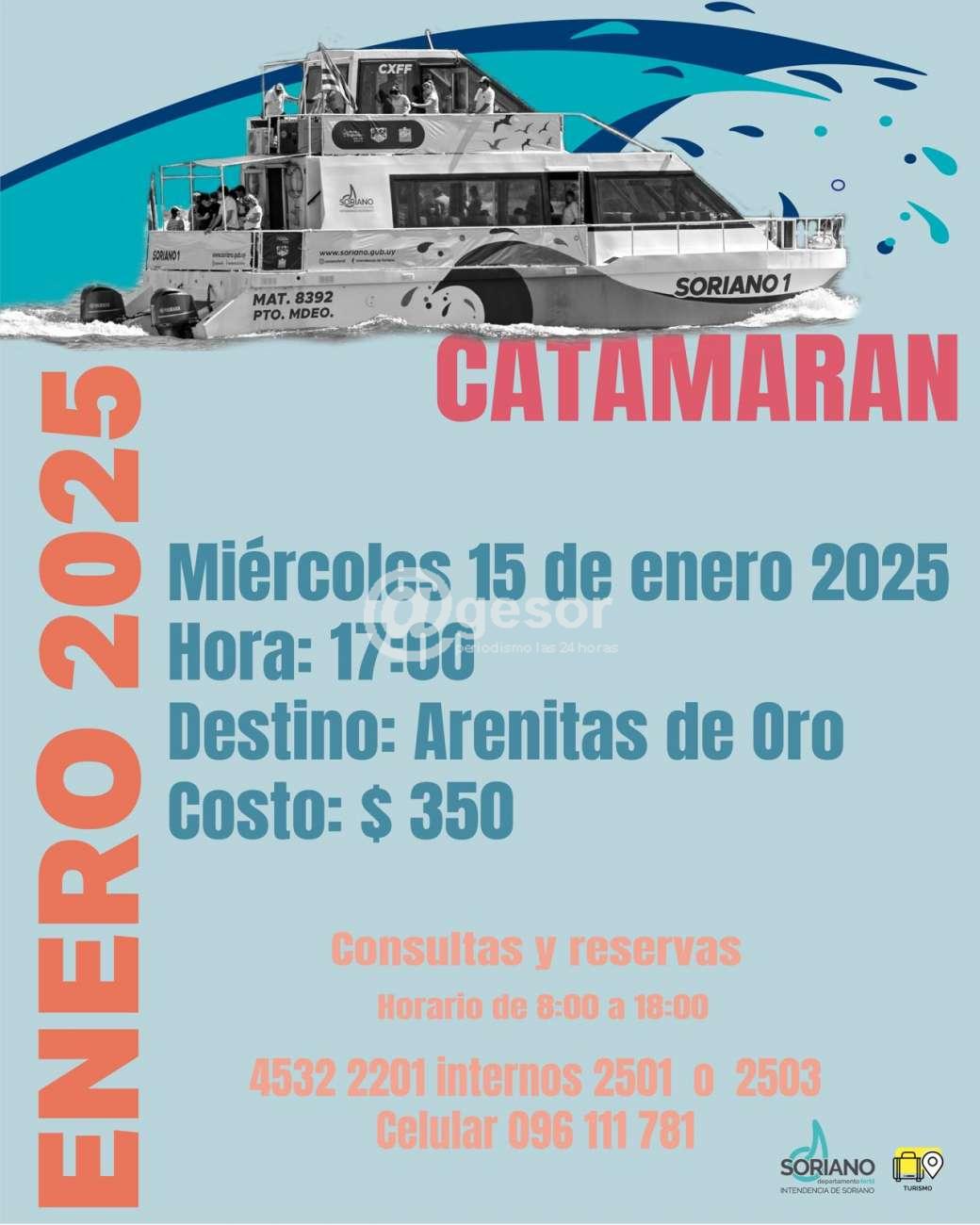El Catamarán Soriano I continúa realizando viajes de paseos por el río Negro, habiendo quedado establecido el cronograma de las próximas salidas de acuerdo al siguiente detalle: