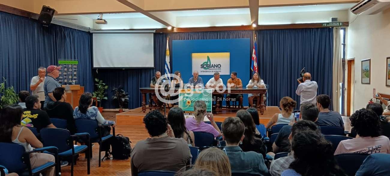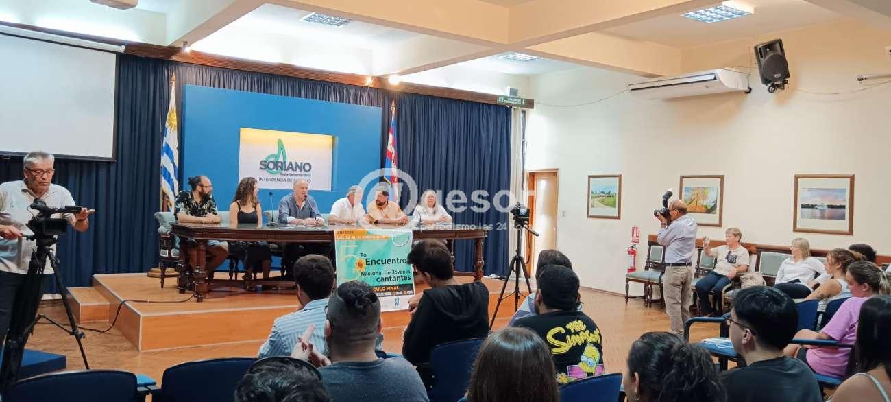 En salón de actos de la Intendencia de Soriano se realizó el lanzamiento del 5to Encuentro de Jóvenes Cantantes. Esta actividad organizada por la dirección de Cultura de la Intendencia y bajo la dirección del prof. Rodrigo Faguaga reúne a 55 jóvenes de todo el país y también de Argentina en actividades de formación en técnica vocal y coral que culminará el próximo viernes con un espectáculo en el Teatro 28 de febrero. Durante estos días los jóvenes participarán de diferentes talleres que les permitirán acceder a herramientas, recursos y técnicas interpretativas y que será un paso en su formación y en la carrera musical que están desarrollando. En el lanzamiento de la actividad acompañando a estos jóvenes estuvieron los profesores Rodrigo Faguaga, Agustín Valiente y Lucía Calabrese, junto con María del Pino, de la dirección de Cultura, el Lic. Javier Utermark, director de Cultura, y el Intendente de Soriano, Guillermo Besozzi quien destacó la importancia de la continuidad de este tipo de encuentros formativos para los jóvenes.