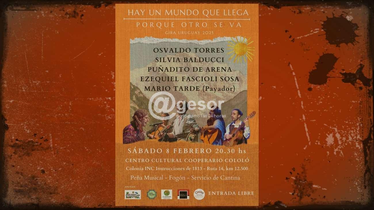 Sábado 8/2. 20.30 hs. Centro Cultural Cooperario Cololó (Colonia Instrucciones del Año XIII, Unidad Cooperaria N°1, Ruta 14, km 12.500, Soriano). Entrada libre, aporte voluntario a la gorra.