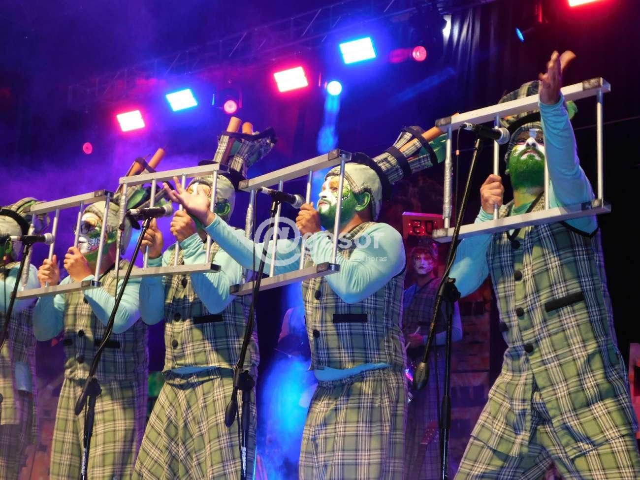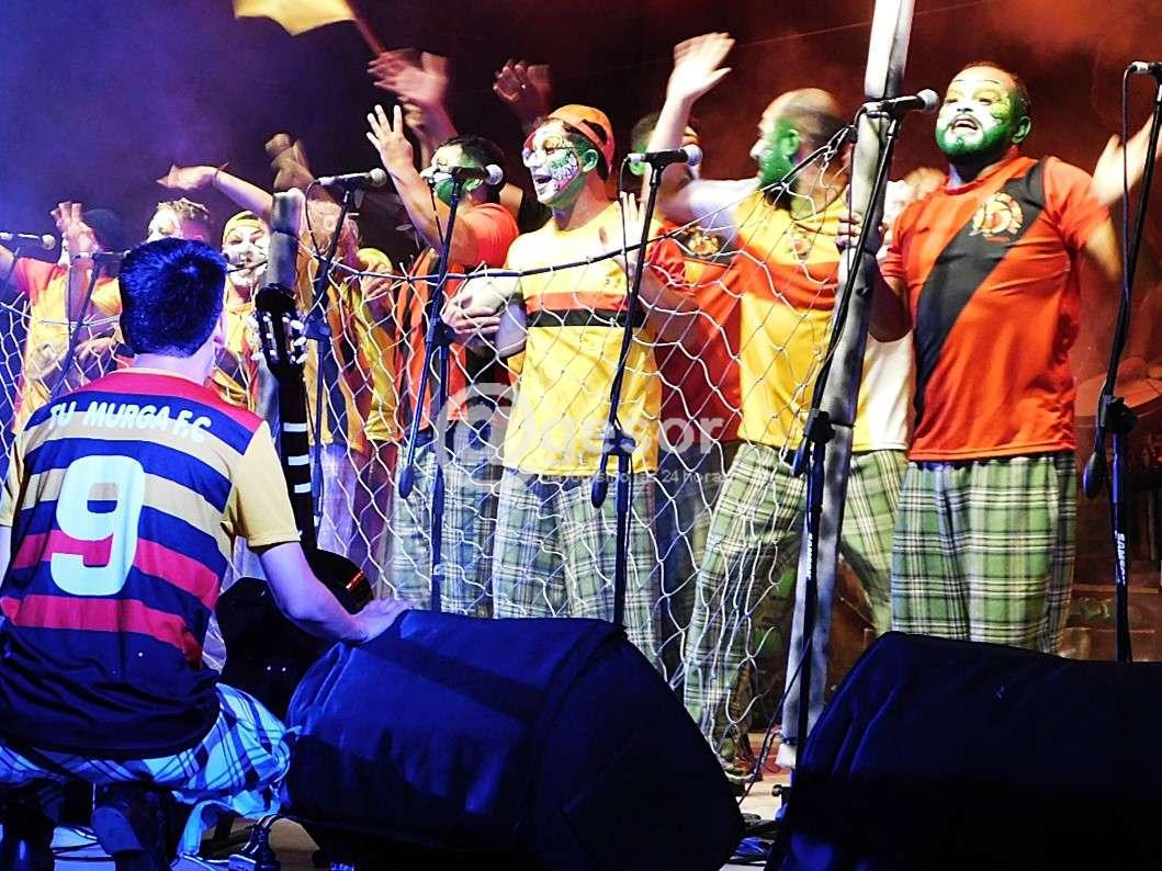 Pero de inmediato la murga se afirmó y cantó en forma armoniosa como nos tiene acostumbrados y mostró sus puntos fuertes en la parte correspondiente a la murga oligarca y donde aparece en escena la hinchada de fútbol espacio donde allí la murga canta y canta, utilizando diferentes temas musicales, en una variedad que gusta al público que la acompaña con el aplauso.