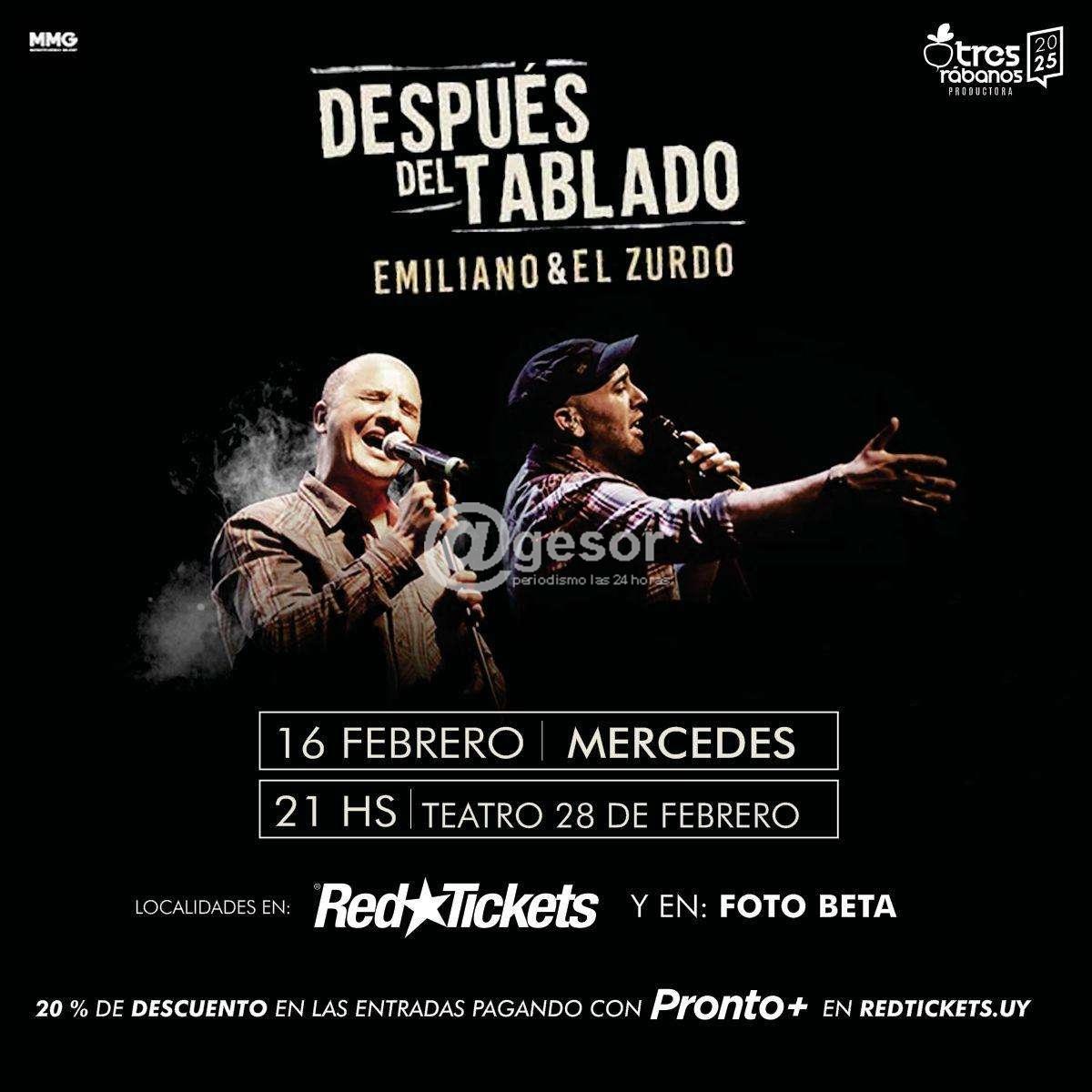 Los amantes del canto popular uruguayo, están de parabienes con la llegada a Mercedes de dos artistas nacionales como el Zurdo Bessio y Emiliano Muñoz, este domingo 16 de febrero con la organización de Tres Rábanos, en el Teatro 28 de Febrero, con entradas a la venta en Foto Beta y a través de RedTickets.