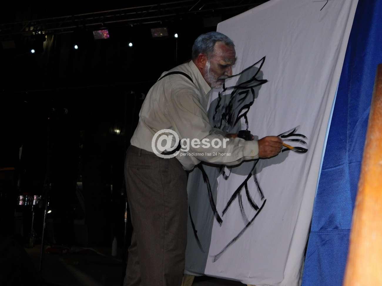 Y allí Romero, un muralista, en pocos segundos despliega el papel en un caballete y con trazos va formando una figura, esa que por momentos ve y en otros sólo en forma difusa