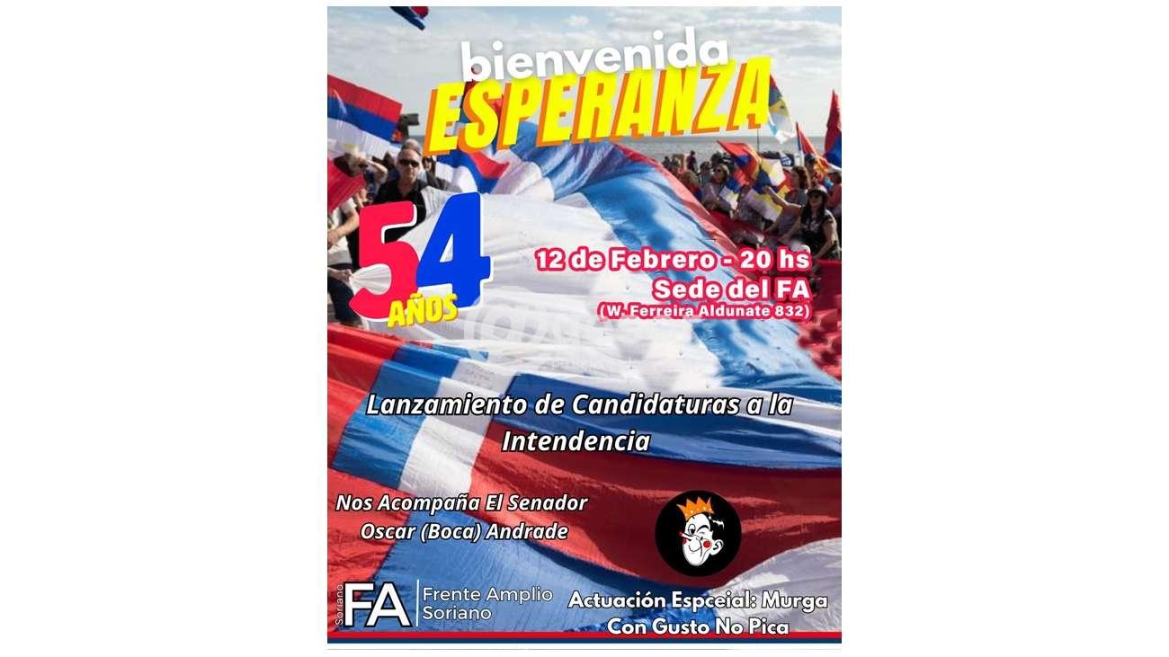 El Frente Amplio celebra sus 54 años y realiza el lanzamiento de las candidaturas a la Intendenia de Soriano.