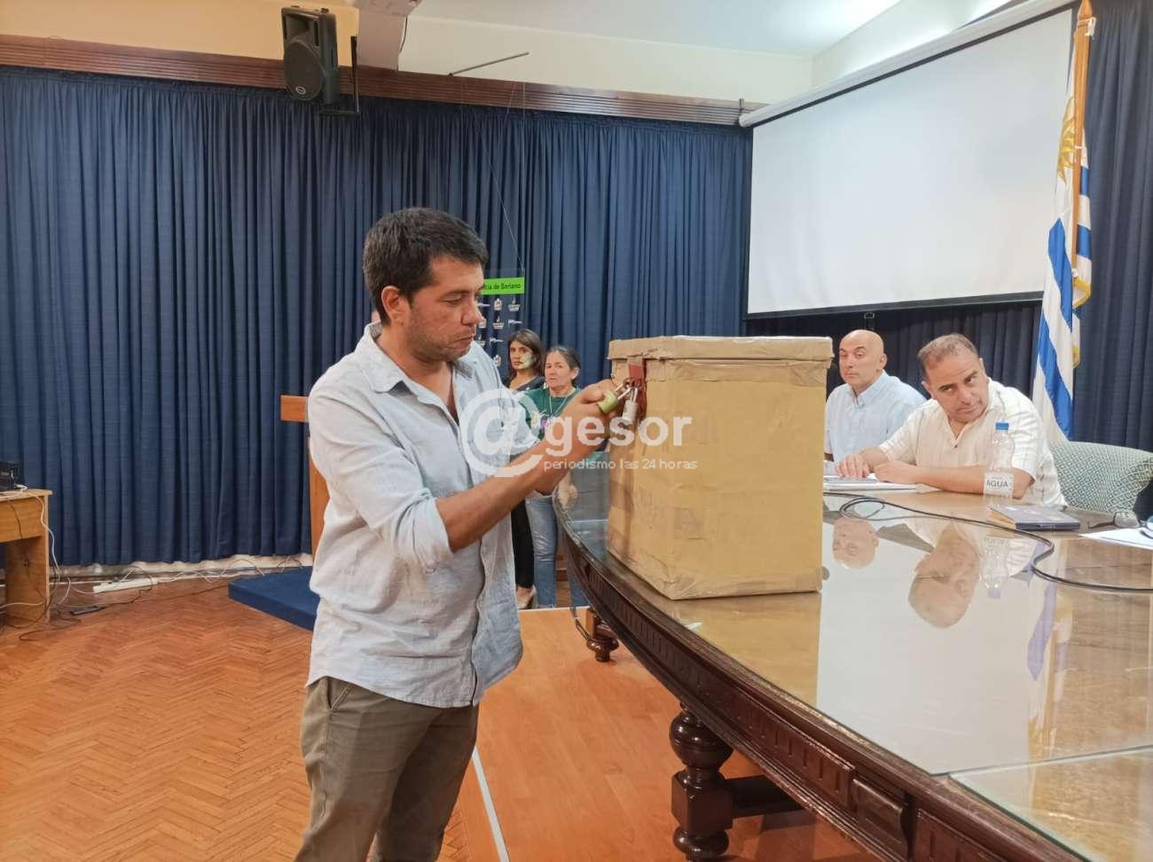 A las 0:14 hs Tabaré Aguiar abrió la urna para comenzar con el recuento de puntos por rubro de cada uno de los conjuntos participantes.