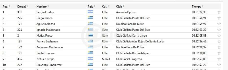 Sergio Fredes del Armonia Cycles se quedó con la etapa contra reloj de la Vuelta Chaná. Fredes puso un tiempo de 31:22,33, seguido de Diego Jamen del Club Ciclista Punta del Este, y Agustín Alonso, del Náutico Boca de Cufré.