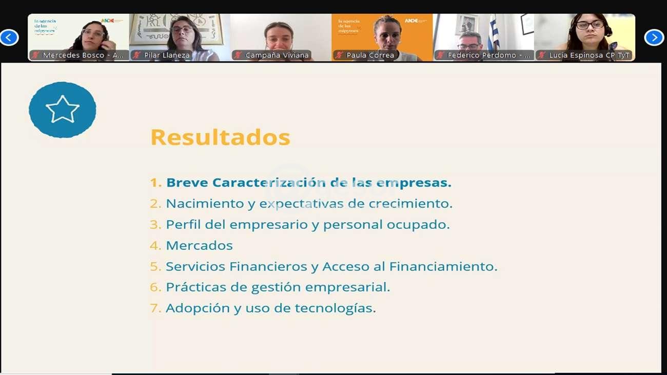 Durante la presentación virtual, que contó con la asistencia de un centenar de personas, participaron María Dolores Carnevale, directora de la División Estadísticas del INE; Pilar Llaneza de la Unidad de Evaluación y Monitoreo de Dinapyme; el director de ANDE Federico Perdomo y la presidenta de ANDE Carmen Sánchez.