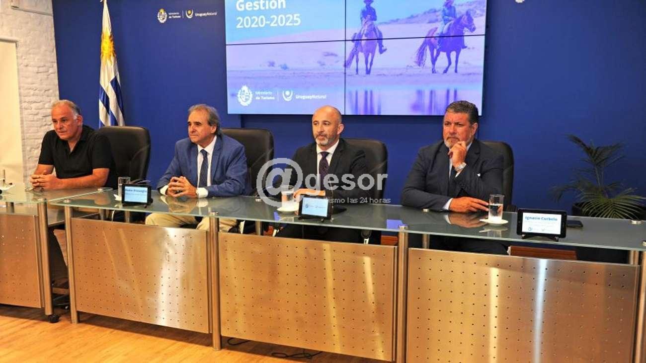 La conferencia de prensa estuvo presidida por el titular de la cartera, Eduardo Sanguinetti, junto al subsecretario, Remo Monzeglio; el director nacional de Turismo, Roque Baudean y el director general de Secretaría, Ignacio Curbelo. Durante su oratoria en la Sala Arredondo del ministerio, Sanguinetti dijo que hubo una buena gestión centrada en un compromiso con el turismo sustentable y sostenible.