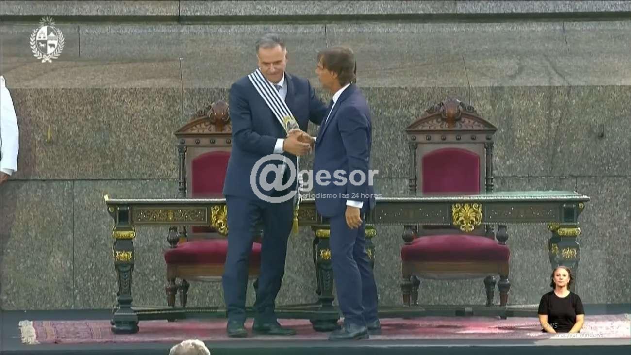 Aquí les ofrecemos algunas postales de un día histórico para los uruguayos a 40 años de la recuperación de la democracia. Entre ellas las del traspaso del mando de Luis Lacalle Pou a Yamandú Orsi en ceremonia realizada en plaza Independencia, así como el saludo del Presidente Orsi y la Vicepresidenta Carolina Cosse desde el balcón del Palacio estévez y también de Orsi junto a su familia.