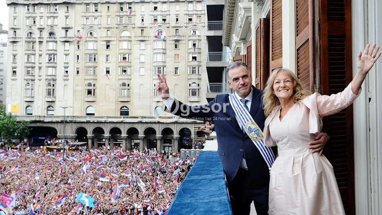 Una vez finalizada la ceremonia de asunción y la firma de las actas de los integrantes del gabinete ministerial entrante, en la tarde de este sábado 1.°, en la plaza Independencia, Orsi y Cosse se trasladaron al Palacio Estévez, donde saludaron al público presente desde el balcón principal.