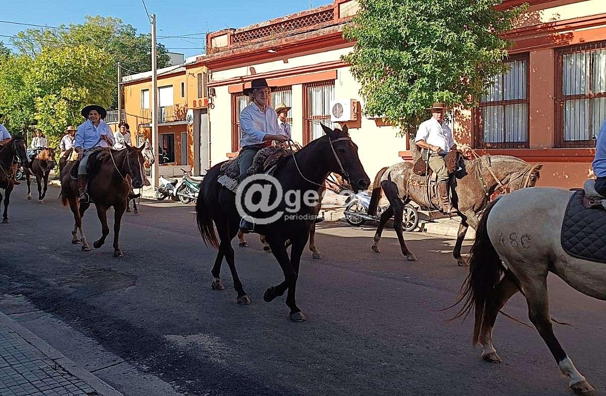 Uno de los momentos más destacados de la jornada llegó con el desfile de caballería, donde García y sus acompañantes se sumaron a la comitiva. Montado a caballo, el candidato recorrió las calles de Dolores, saludando a los vecinos y recibiendo el apoyo de muchos que se acercaban para tomarse una foto o simplemente expresarle su saludo.