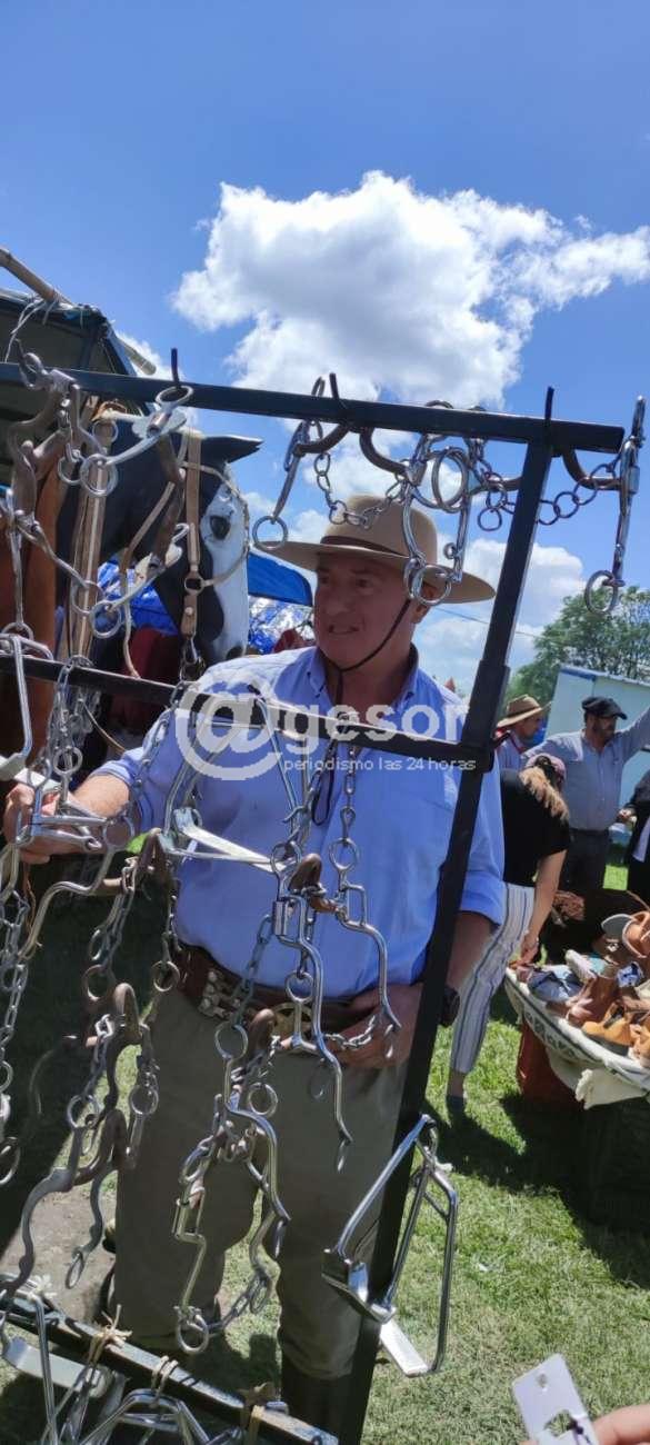 Desde temprano, el candidato y su comitiva, integrada por figuras como Joaquín Gómez, exalcalde de Dolores, y Gastón Formiliano, candidato a Alcalde de Cardona, José Luis Gómez exIntendente de Soriano, se hicieron presentes en el predio de la fiesta. Con una sonrisa y un saludo cercano, García recorrió los puestos de artesanías, donde los trabajadores locales exhibían sus creaciones, desde monturas y riendas hasta piezas de cuero y plata.