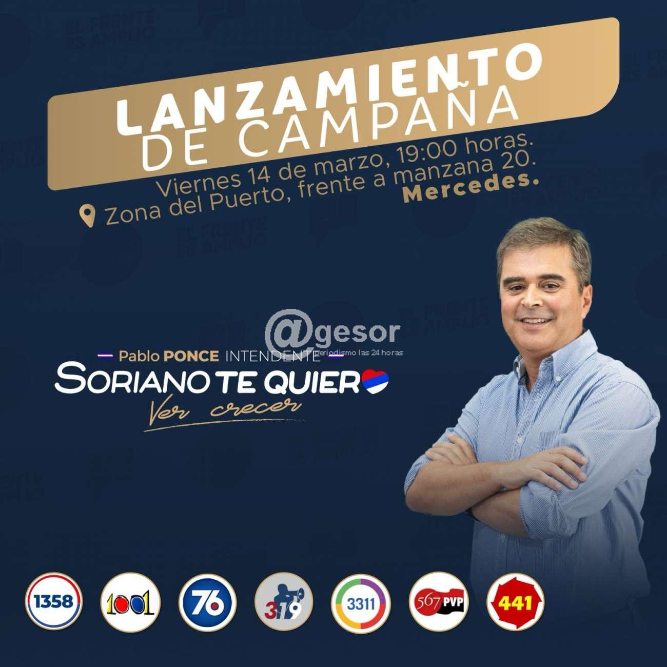 Este próximo viernes 14 de marzo, se realizará el lanzamiento de campaña del candidato a intendente de Soriano, Pablo Ponce.