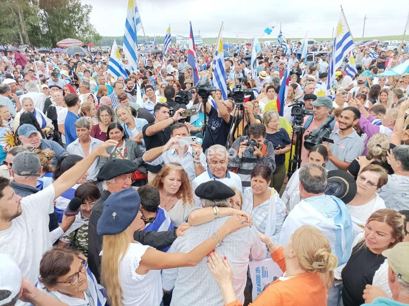En su chacra ubicada junto a Ruta 2 en las cercanías de Mercedes, el exIntendente de Soriano, Guillermo Besozzi, recibió a las miles de personas que tanto en vehículos automotores como a caballo, llegaron hasta allí desde diferentes puntos del departamento y de otros puntos del país, con la finalidad de brindarle el apoyo ante la situación procesal que está sufriendo como imputado por la Justicia, junto a otros seis compañeros de la Intendencia de Soriano, por delitos vinculados con la Administración Pública y cumpliendo medida cautelar de arresto domiciliario total con uso de tobillera electrónica.