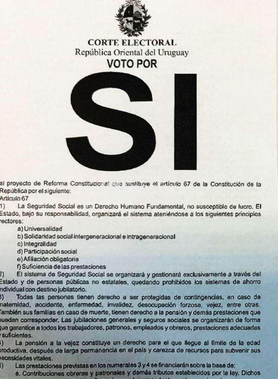 El año pasado conjuntamente con las elecciones presidenciales, se realizaba un plebiscito o consulta popular, para elegir que sistema de Seguridad Social queríamos para el futuro los uruguayos.
