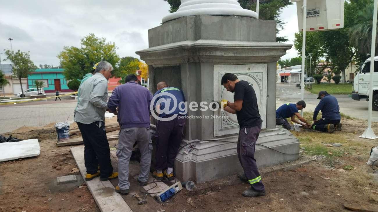 Tras realizar la pintura de la columna, se efectuó la colocación de las placas originales en mármol, situadas en la base. Las mismas fueron reacondicionadas, incluso algunas debieron ser sometidas a un proceso especial de restauración debido a su estado.