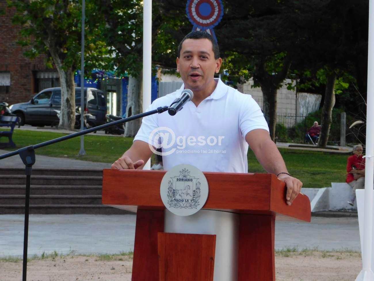 El Arq. Enzo Perini de la División Arquitectura de la Intendencia de Soriano fue el responsable de la parte constructiva de la nueva estatua de la Libertad en plaza Rivera y al hacer uso de la palabra dijo "les voy a hacer una pequeña reseña de lo que fue este desafío, este trabajo que se hizo y que abarcó muchas áreas de la Intendencia.