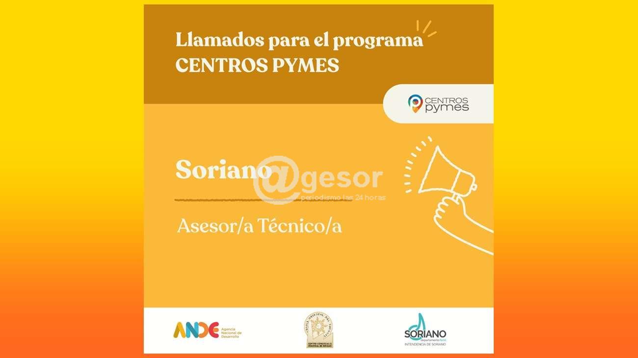 Mirá los Términos de Referencia e inscribite acá https://www.ande.org.uy/centros-pymes/llamados-laborales/item/asesor-a-tecnico-del-centro-pyme-de-soriano-2.html