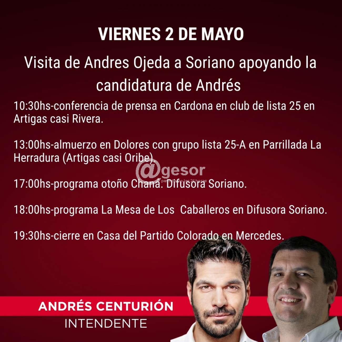 Este viernes 2 de mayo visita de ANDRÉS OJEDA a SORIANO apoyando la candidaduta de ANDRÉS CENTURIÓN a la Intendencia de Soriano