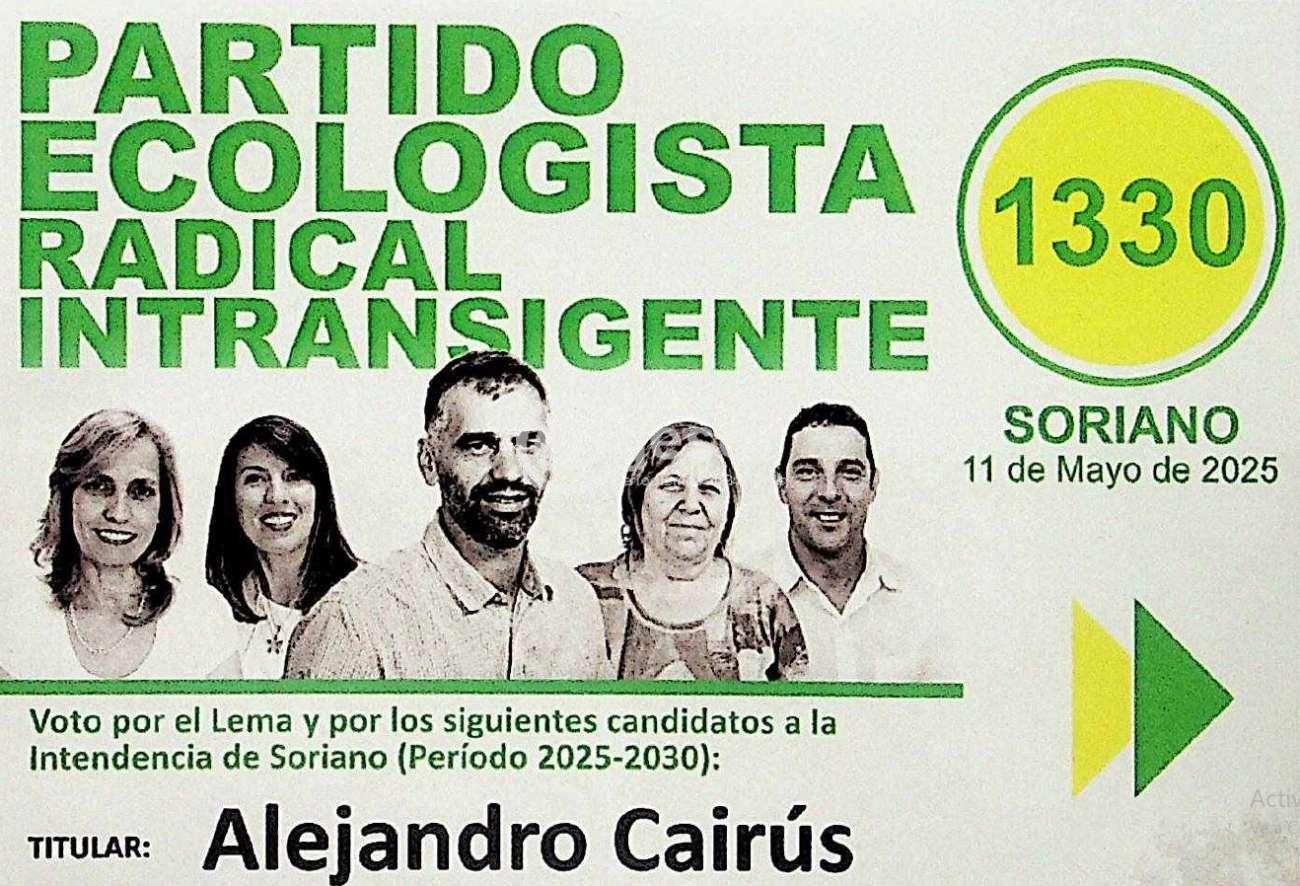 Entre las opciones que el ciudadano dispondrá para elegir a las autoridades de la Intendencia de Soriano y la Junta Departamental el domingo 11 de mayo, se encuentra la del Partido Ecologista Radical Intransigente (PERI), que se identifica con la hoja 1330, lleva como candidato a Intendente de Soriano a Alejandro Cairús y el mismo Alejandro Cairús encabeza la Lista a la Junta Departamental, seguido por Marilina López, Robert Ramos, Teresa Slavica, Federico Barufaldi en los primeros lugares.