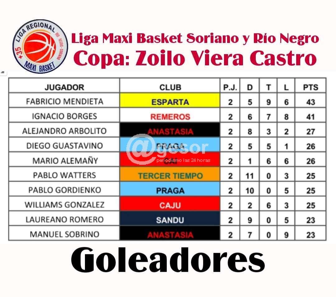 Fabricio Mendieta de Esparta es el máximo anotador con 43, lo sigue el costero Ignacio Borges 41 y el funebrero Alejandro Arbolito con 27.
