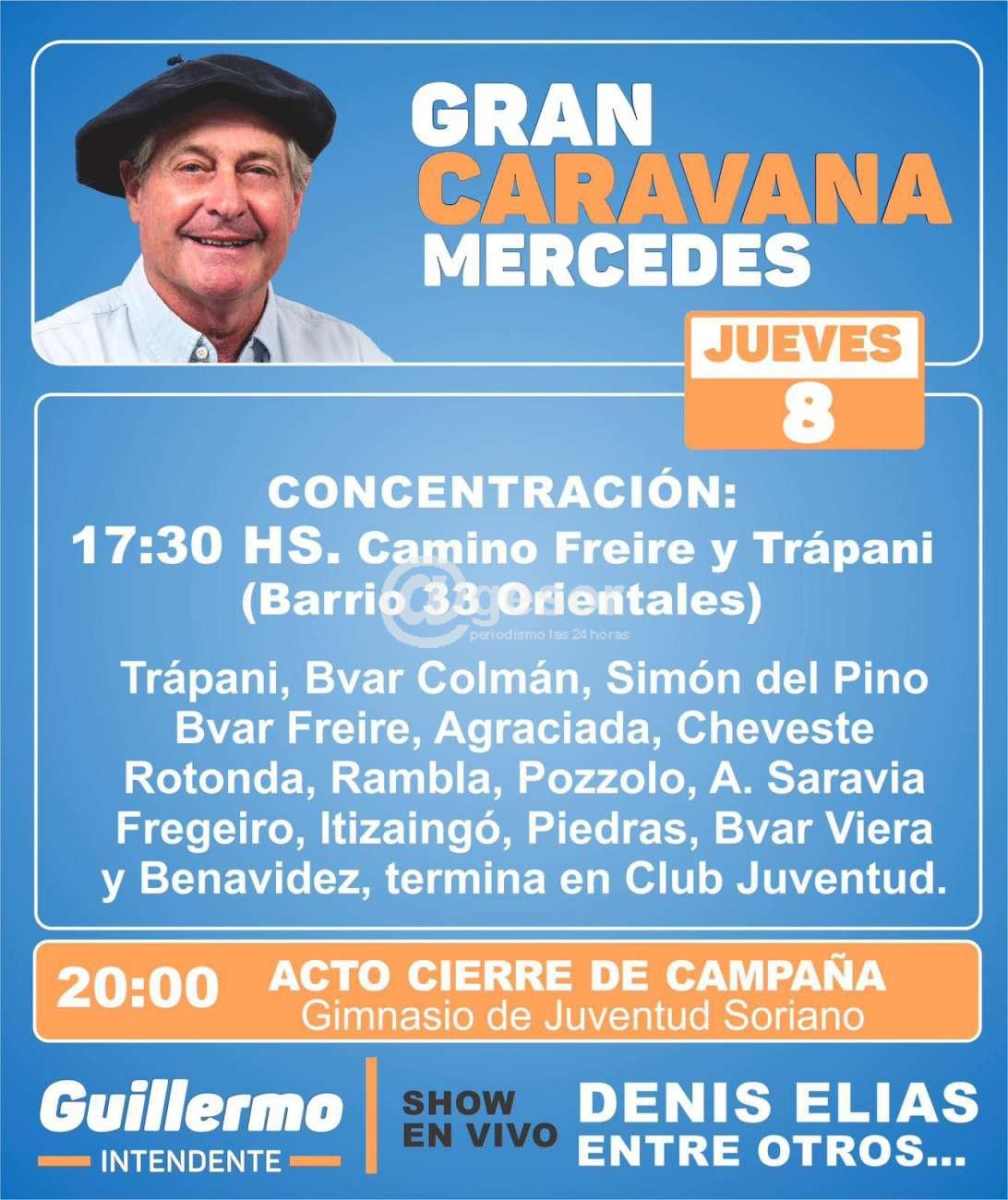 Este jueves 8 se realiza gran caravana y acto de cierre con GUILLERMO INTENDENTE, en Mercedes.
