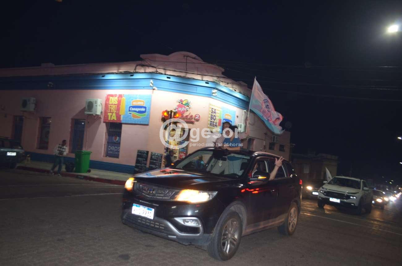 En la capital departamental la caravana comenzó en el barrio 33 Orientales, para recorrer gran parte de la ciudad hasta llegar al gimnasio del club Juventud Soriano donde se realizó un acto.
