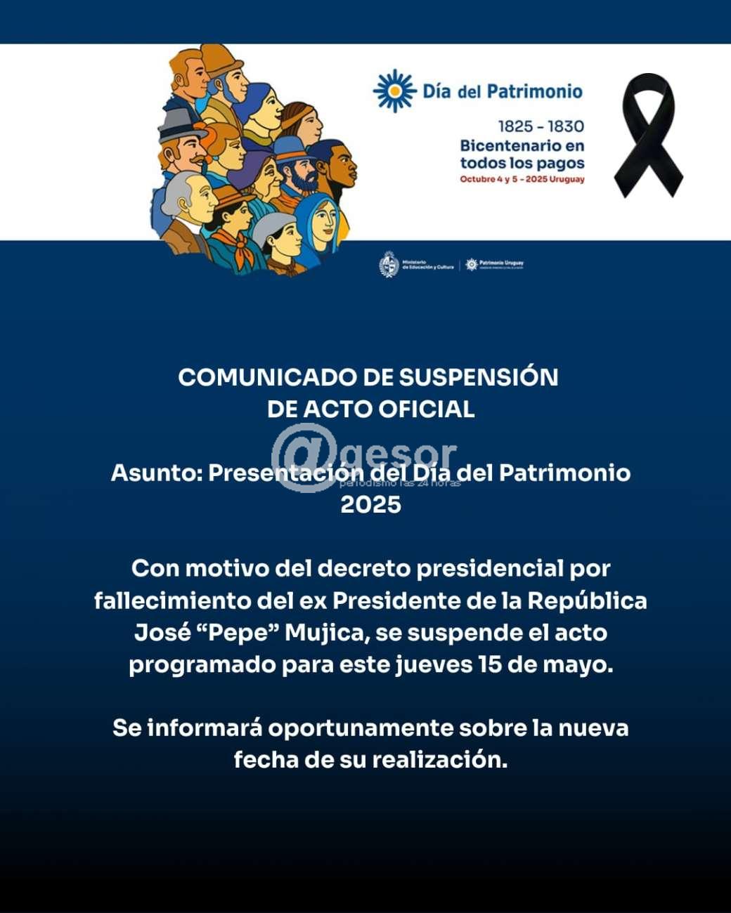 Desde el MEC se informa del comunicado de suspensión de acto oficial de la presentación del Día del Patrimonio 2025, que se iba a realizar este jueves 15.