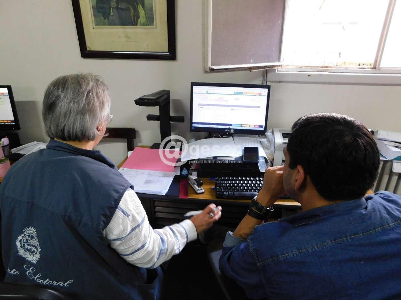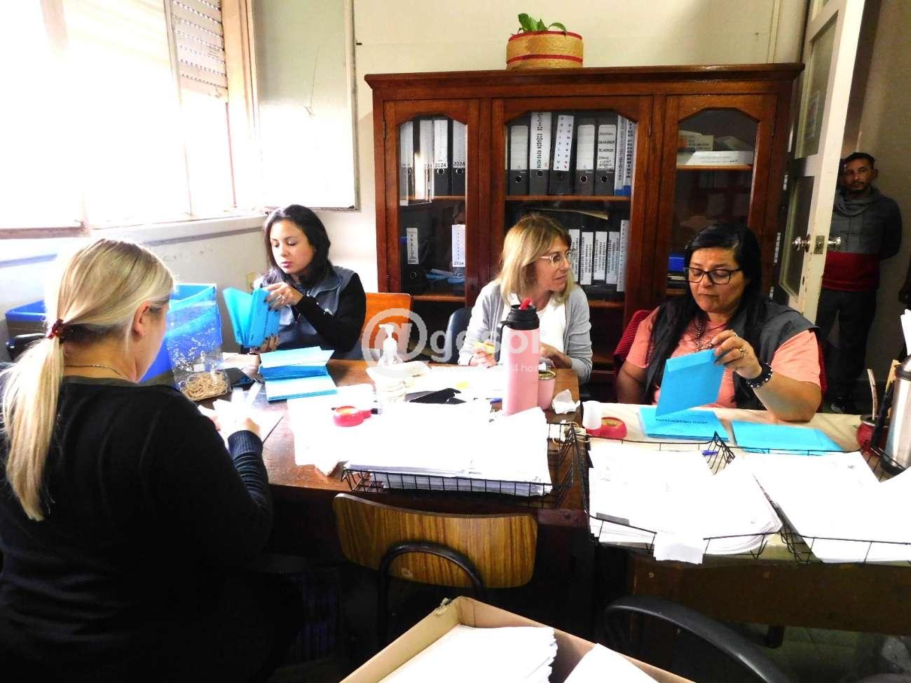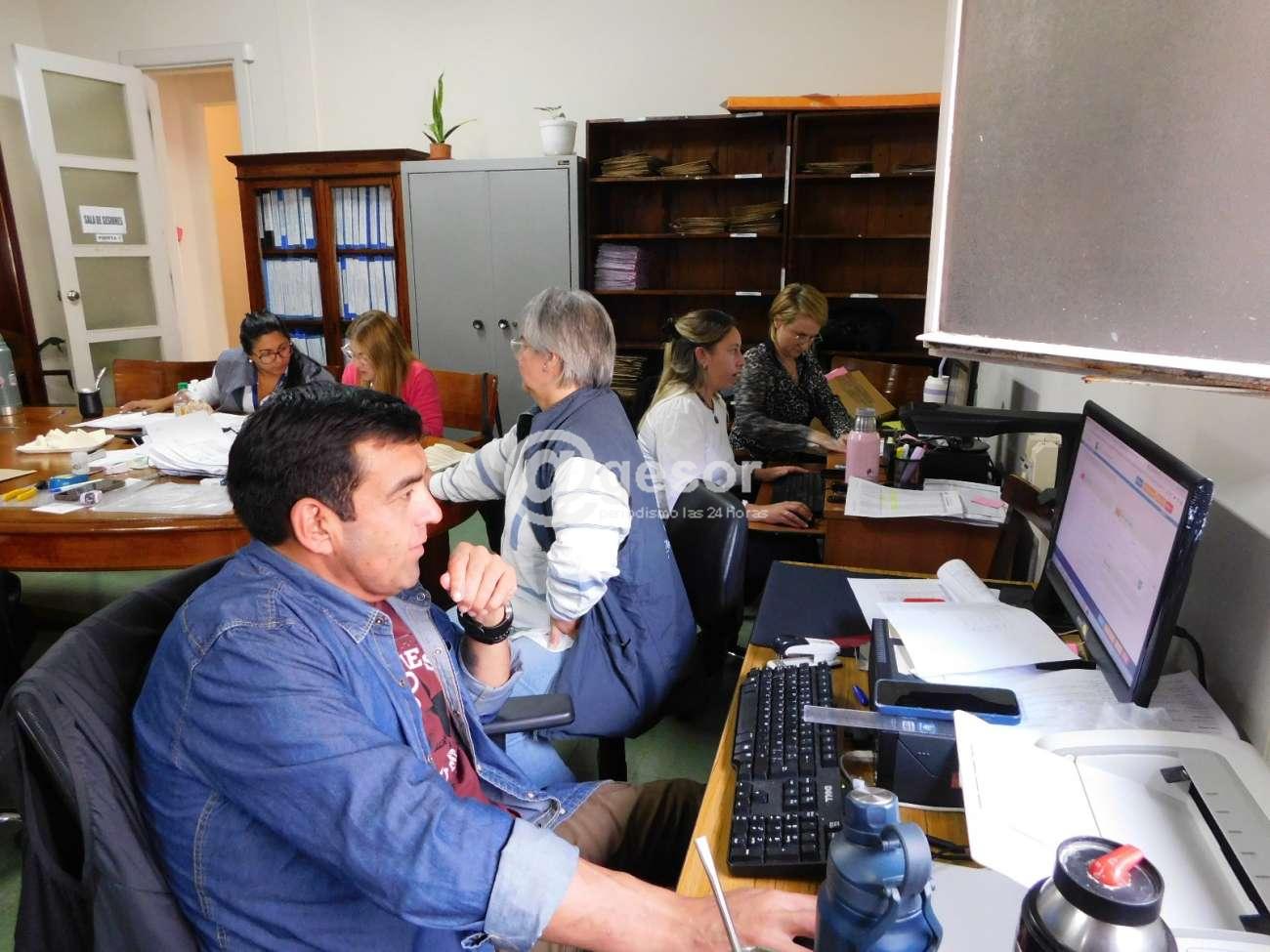 Paralelamente hay dos parejas de funcionarios que trabajan en la parte de informática, una vez hecho el repaso de las actas, pasando en uno de los casos el acta de los circuitos pares y en el otro los circuitos impares.